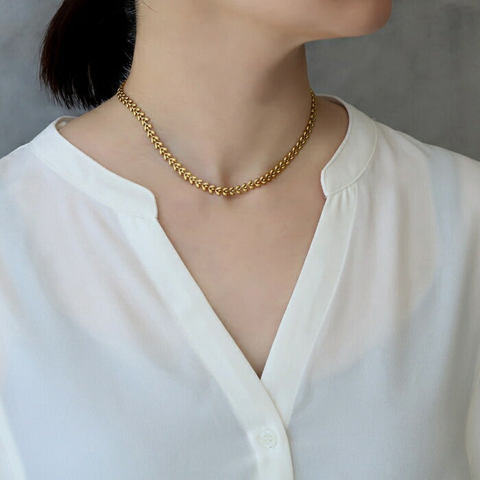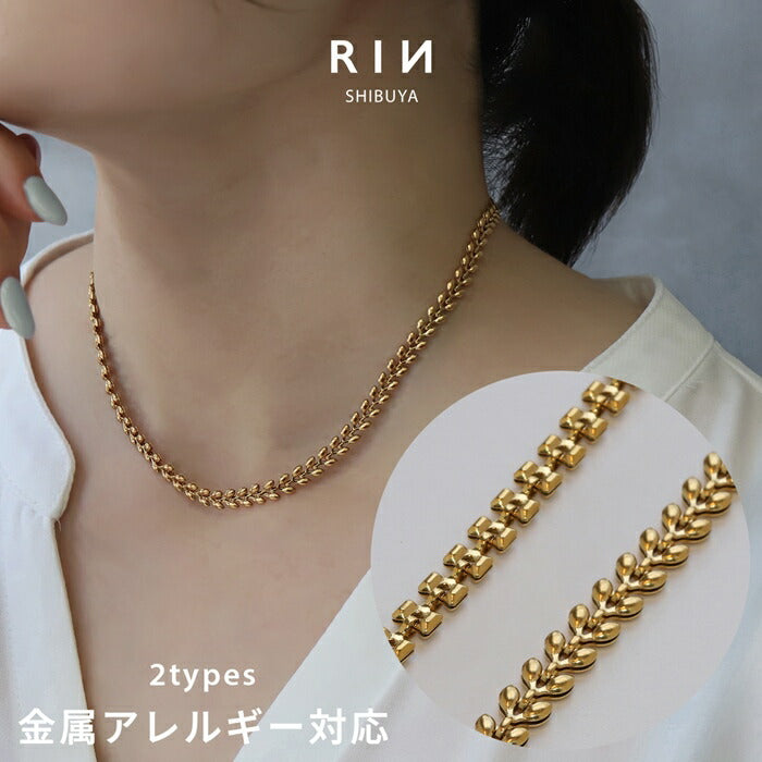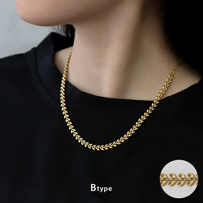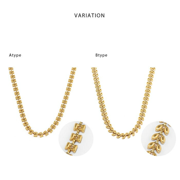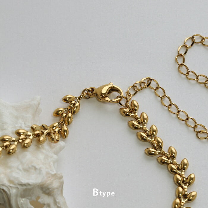 チェーンネックレス サージカルステンレス アジャスター調節 短め リーフチェーン K18コーティング ネックレス0131 nec-127