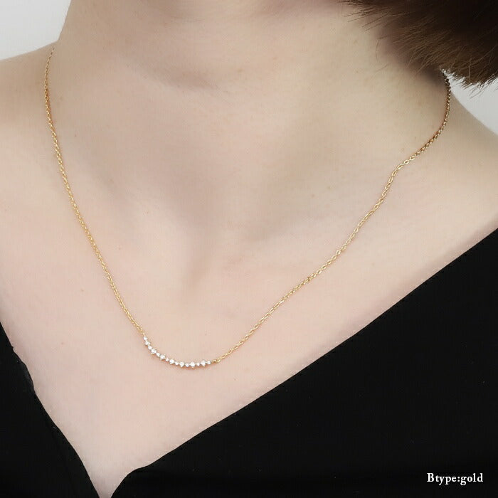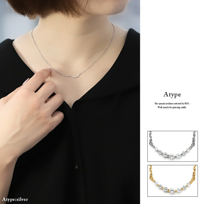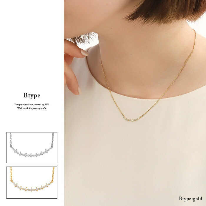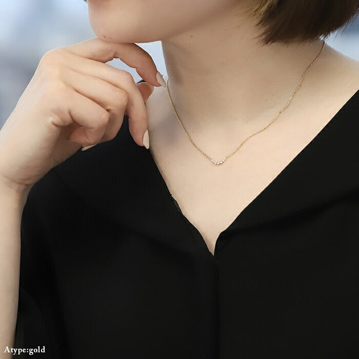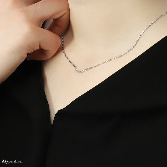 ネックレス あずきチェーン キュービックジルコニア 金属アレルギー対応 シルバー ゴールド ネックレス0020 nec-14