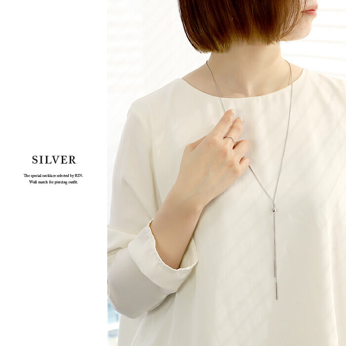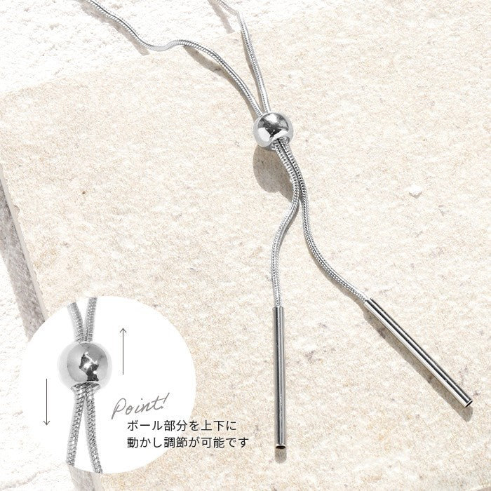 nec-16 ネックレス チェーン レディース ロング シルバー ゴールド 金属アレルギー対応 ニッケルフリー シンプル 18k 18金 k18 ループタイ 18kコーティング 長さ調節 ボール アクセサリー ジュエリー かわいい おしゃれ 細 上品 凛