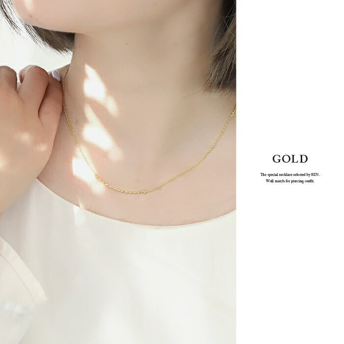 nec-17 ネックレス チェーン レディース シルバー ゴールド 金属アレルギー対応 シンプル 18k 18金 k18 あずきチェーン 小豆 アジャスター カニカン アクセサリー ジュエリー 18kコーティング ロジウムコーティング 楕円 円筒 かわいい おしゃれ 大人 上品 きれいめ 凛