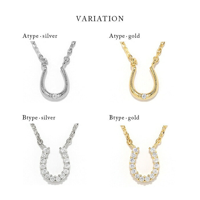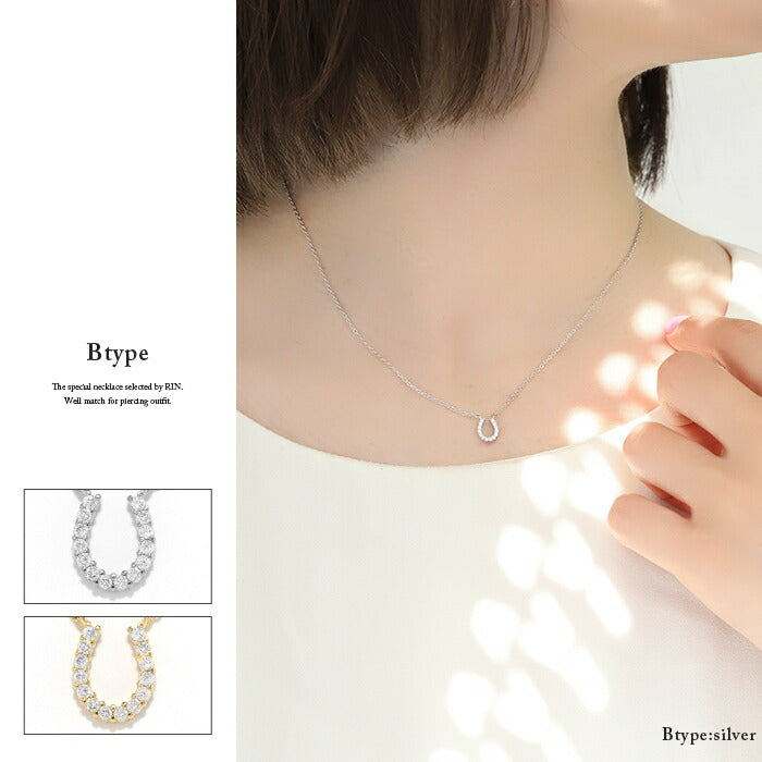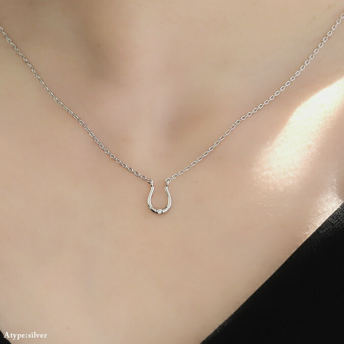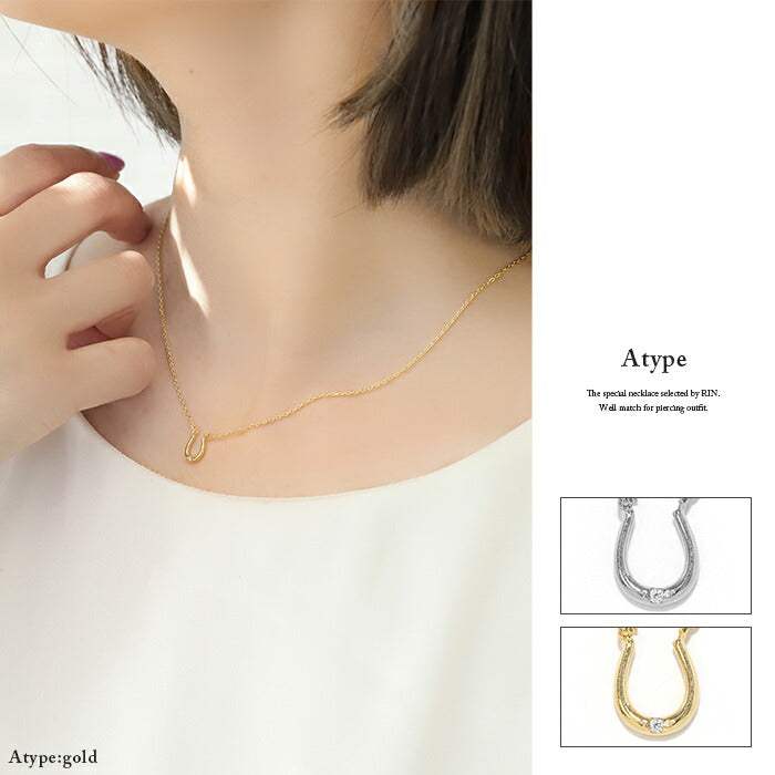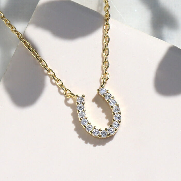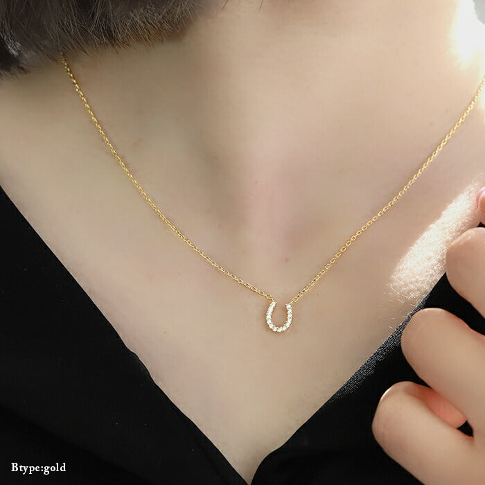 nec-19 ネックレス ペンダント チェーン レディース シルバー ゴールド 金属アレルギー対応 シンプル 18k 18金 k18 ホースシュー 馬蹄 あずきチェーン 小豆 アクセサリー ジュエリー 18kコーティング キュービックジルコニア かわいい おしゃれ 大人 上品 凛
