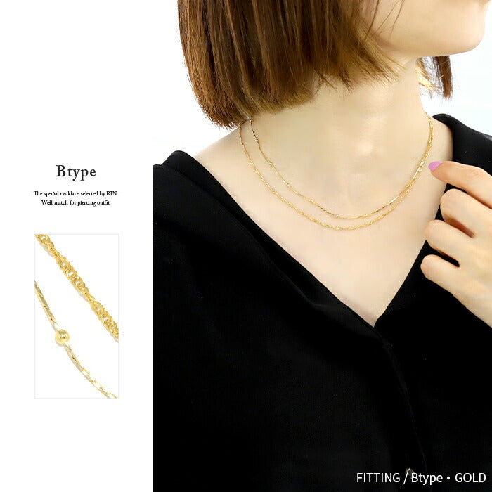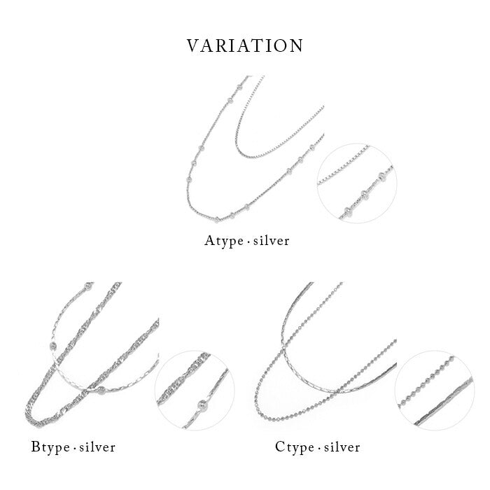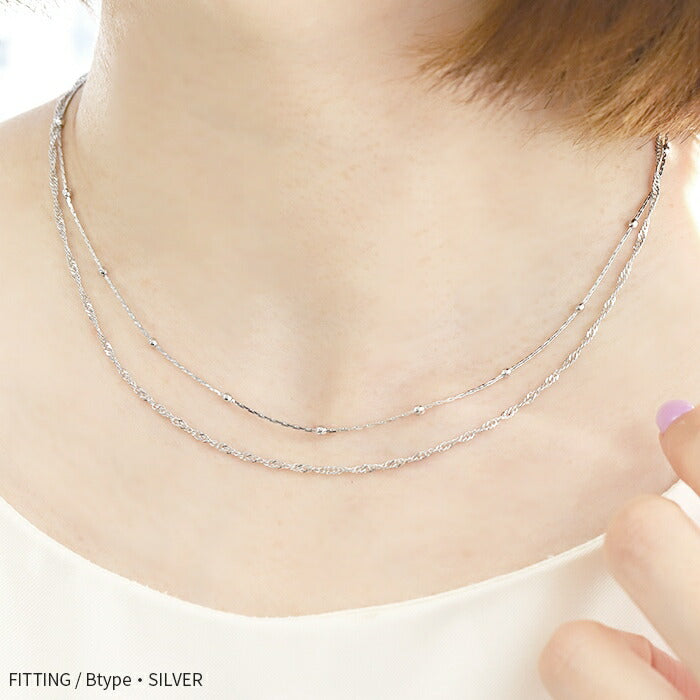 nec-23 ネックレス チェーン レディース シルバー ゴールド 2連 レイヤード シンプル 18k 18金 k18 喜平チェーン ボールチェーン ベネチアンチェーン 18kコーティング かわいい おしゃれ 大人 上品 凛
