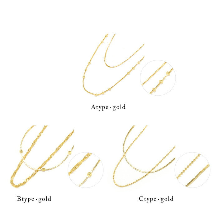 ネックレス チェーン 2連 レイヤード チェーン ボールチェーン ベネチアンチェーン 18kコーティング ネックレス0029 nec-23
