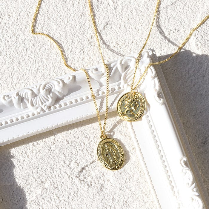 ▲ nec-3 ネックレス チェーン レディース メンズ コインネックレス ゴールド シンプル 真鍮 18k 18金 k18 キヘイチェーン アジャスター カニカン アクセサリー ジュエリー 聖母 マリア エリザベス ペンダント トップ コイン メダル 18kコーティング かわいい おしゃれ