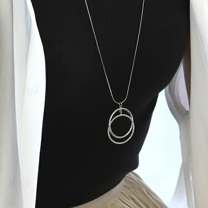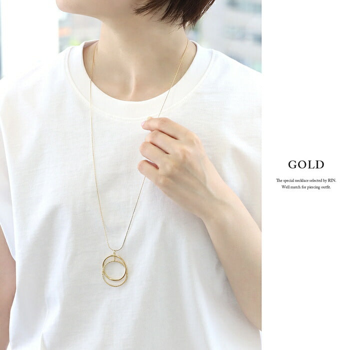 nec-45 ネックレス レディース チェーン チェーンネックレス ロング リング クロス 2連 シンプル 16k 16kコーティング アクセサリー 大ぶり ロジウムコーティング カジュアル シルバー ゴールド 結婚式 かわいい おしゃれ 大人 上品 フォーマル 凛