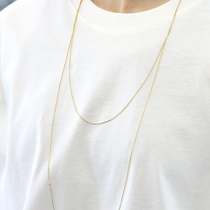 ロング チェーンネックレス 2連 レイヤード シンプル ベネチアンチェーン 16kコーティング ネックレス0052 nec-48