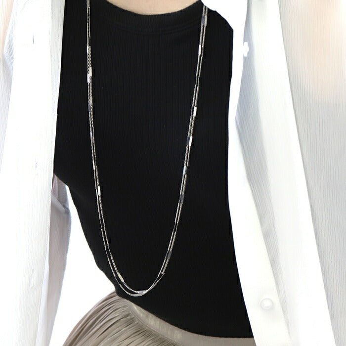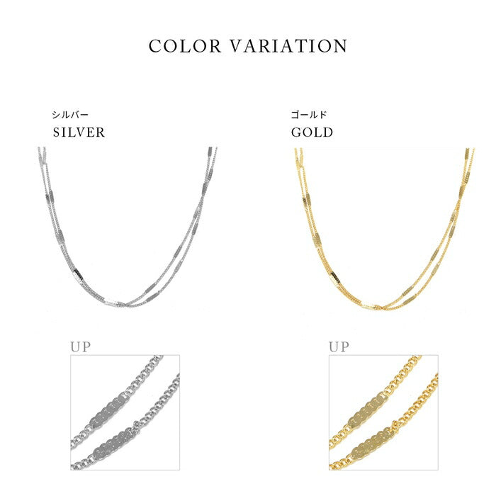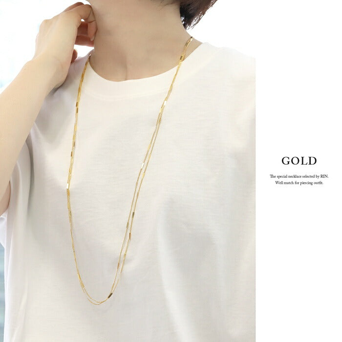 nec-50 ネックレス レディース チェーン チェーンネックレス ロング 2連 レイヤード シンプル 喜平チェーン キヘイチェーン 16k k16 16kコーティング ロジウムコーティング カジュアル シンプル シルバー ゴールド かわいい おしゃれ 大人 上品 フォーマル 凛