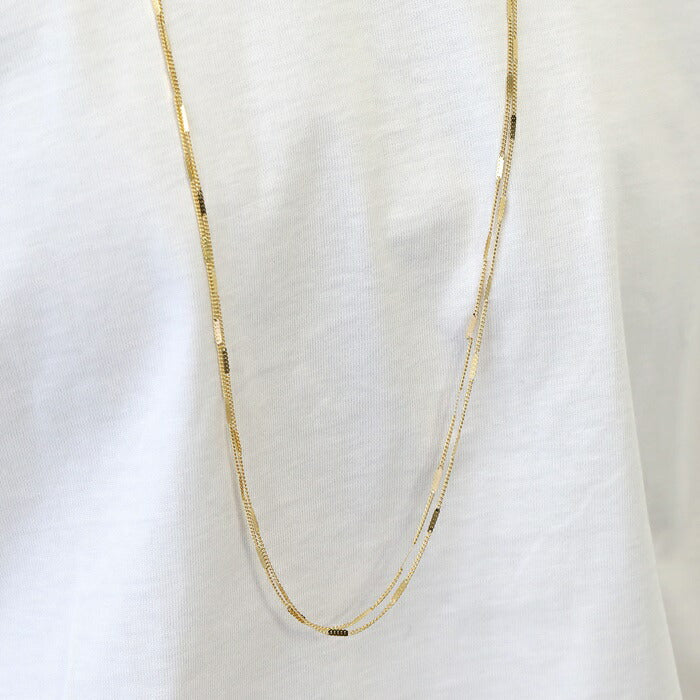 ネックレス チェーンネックレス ロング 2連 レイヤード シンプル 喜平チェーン 16kコーティング ネックレス0054 nec-50