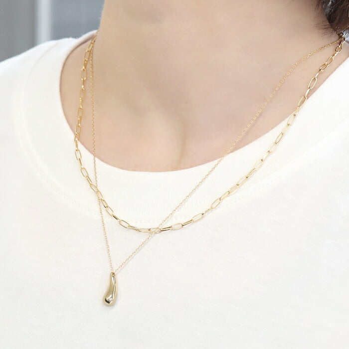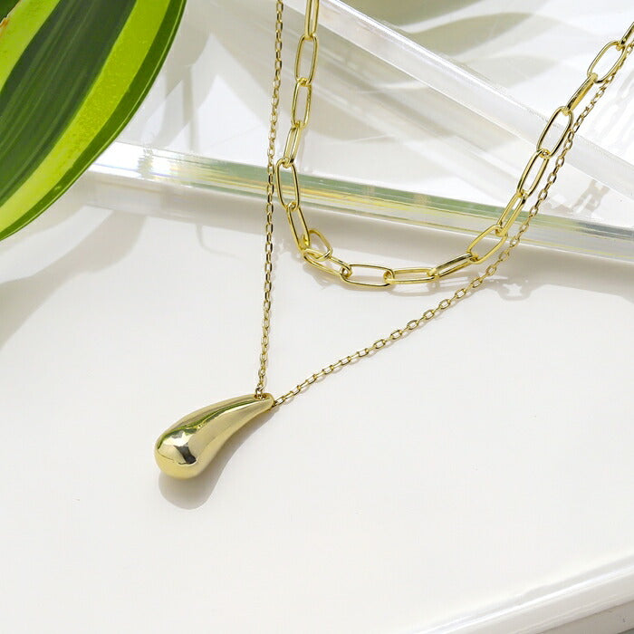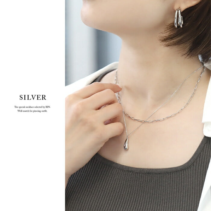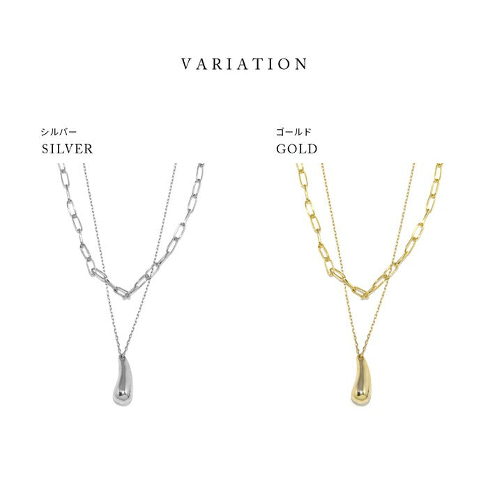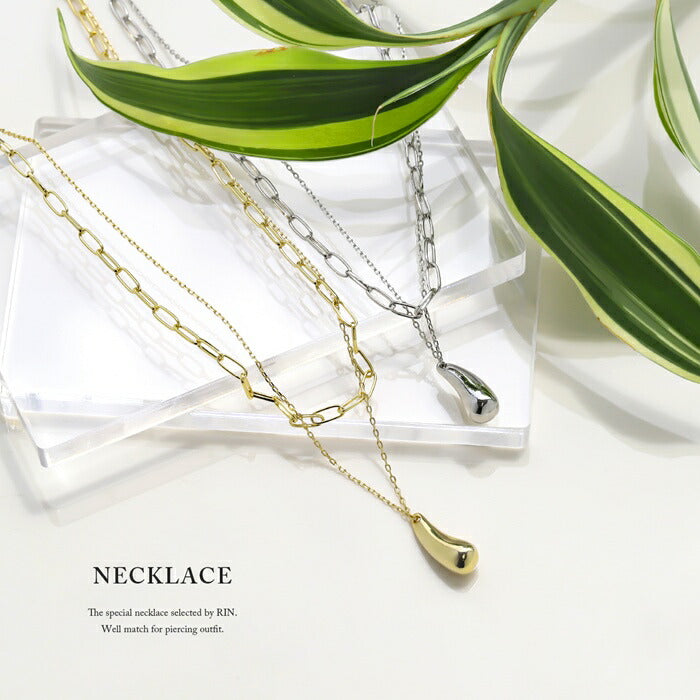 ネックレス 2連 レイヤード 雫 ドロップ ロジウムコーティング 16kコーティング チェーン ペンダント ネックレス0056 nec-52