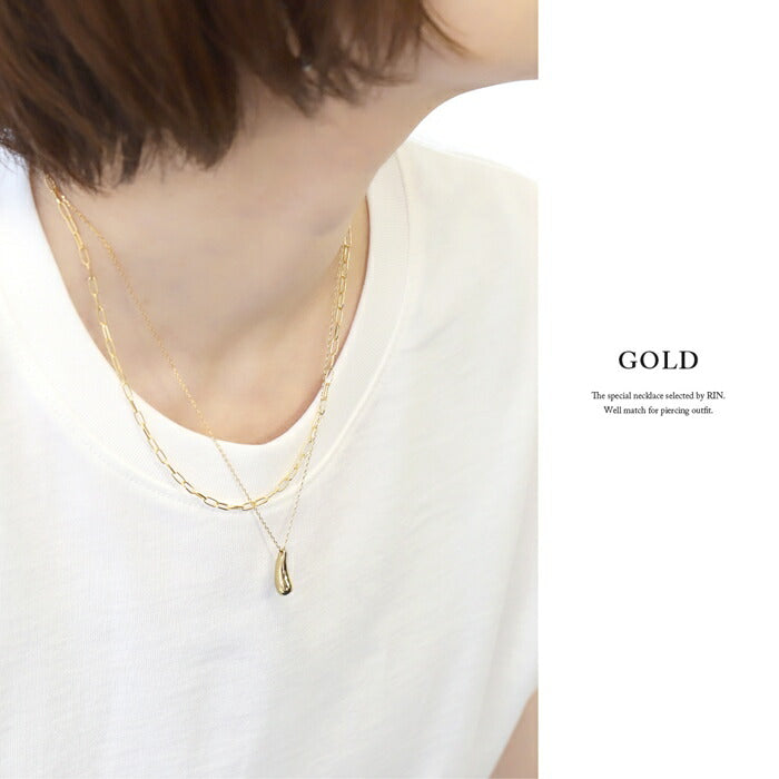 nec-52 ネックレス レディース チェーン チェーンネックレス ショート 短め 2連 雫 ドロップ レイヤード シンプル 16k 16kコーティング ロジウムコーティング カジュアル シンプル シルバー ゴールド かわいい おしゃれ 大人 上品 フォーマル 凛