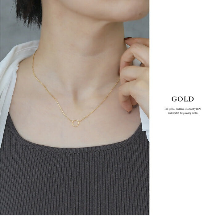ネックレス チェーン サークル リング あずきチェーン 38cm 18金 ロジウムコーティング カジュアル シンプル シルバー ゴールド ネックレス0069 nec-65