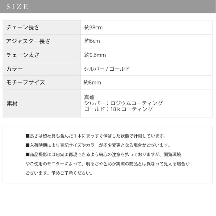 nec-65 ネックレス レディース チェーン チェーンネックレス あずきチェーン アズキチェーン ショート 短め 38cm 18k 18金 シンプル ロジウムコーティング カジュアル シンプル シルバー ゴールド かわいい おしゃれ 大人 フォーマル 真鍮 凛