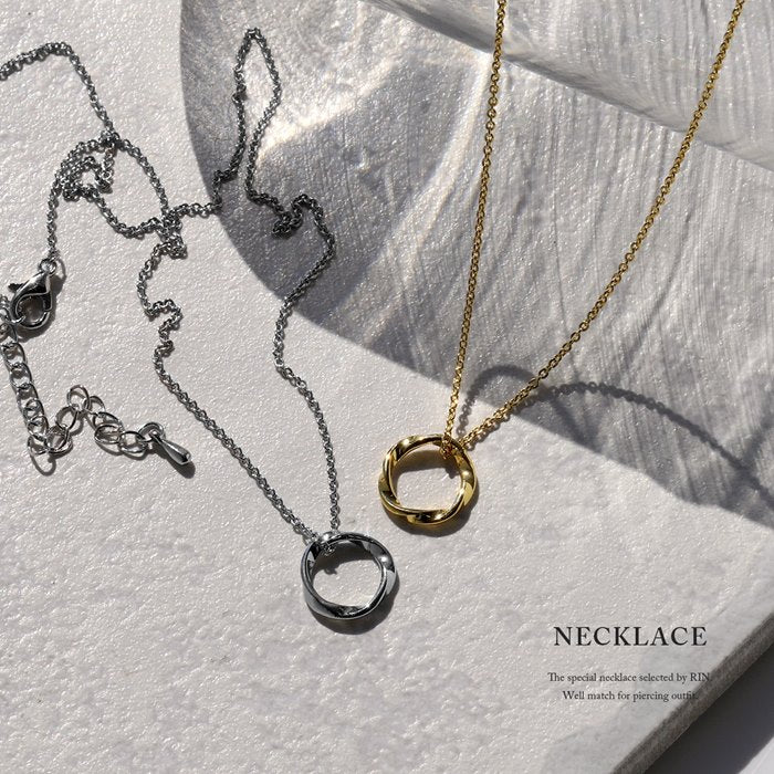nec-67 ネックレス レディース チェーン メビウスの輪 アズキチェーン あずきチェーン ショート 短め サークル リング サークルリング 38cm 18k 18金 シンプル カジュアル シンプル シルバー ゴールド かわいい おしゃれ 大人 フォーマル 真鍮 凛