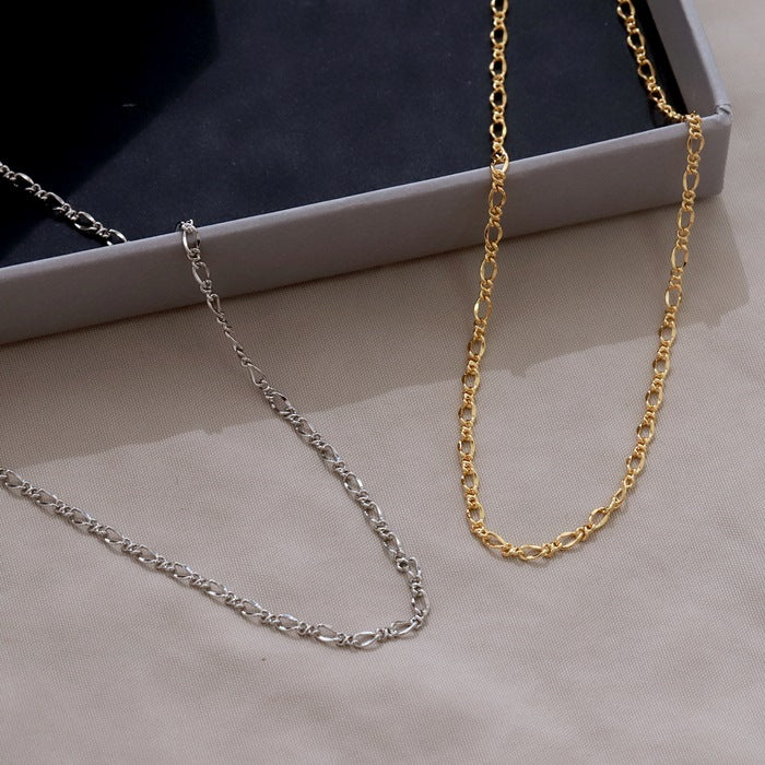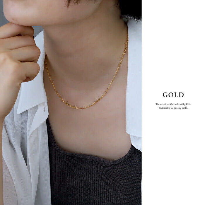 nec-69 ネックレス レディース チェーン チェーンネックレス フィガロチェーン ショート 短め 38cm 18k 18金 シンプル ロジウムコーティング カジュアル シンプル シルバー ゴールド かわいい おしゃれ 大人 フォーマル 真鍮 凛