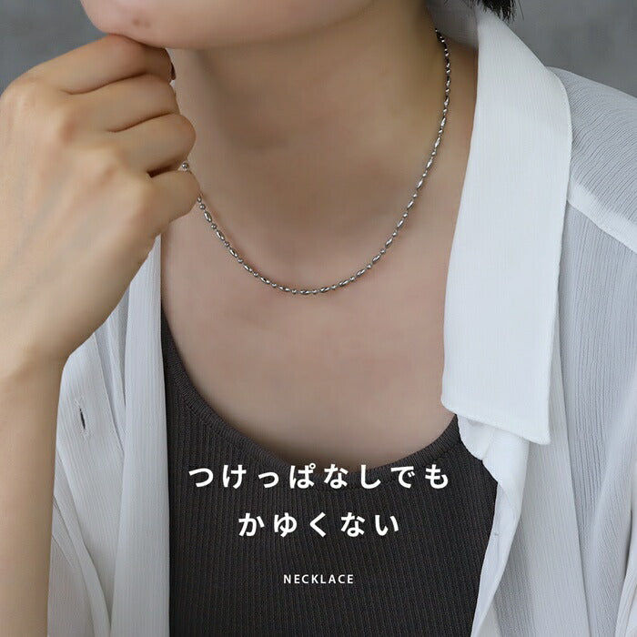 nec-73 ネックレス チェーン レディース サージカルステンレス 金属アレルギー対応 つけっぱなし 35cm シルバー チェーンだけ シンプル ボールチェーン ショート 短め 肌に優しい メンズ アジャスター 長さ 調節 アクセサリー 凛
