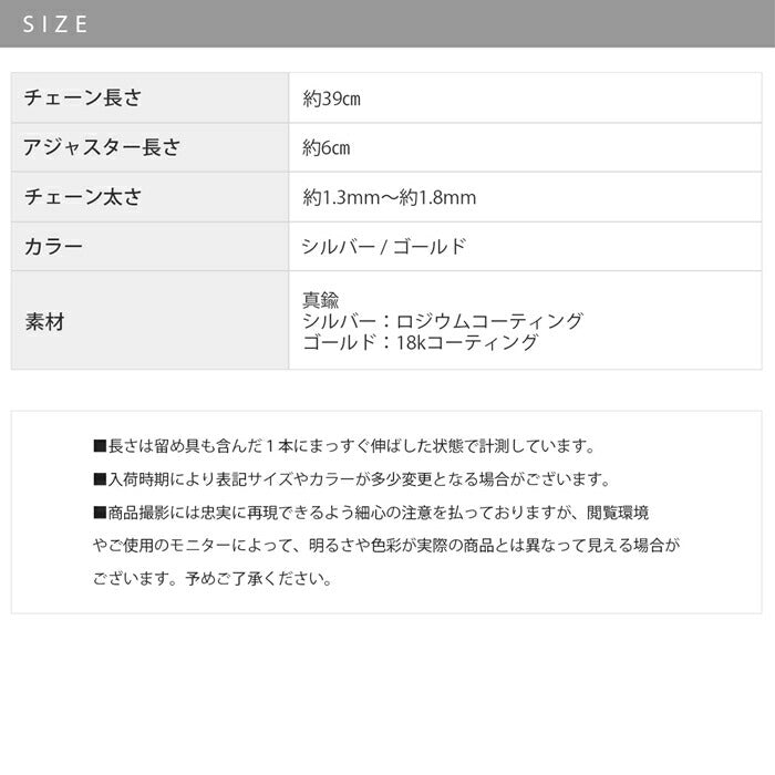 nec-80 ネックレス レディース チェーン チェーンネックレス キヘイチェーン 39cm 短め ショート シルバー ゴールド 18k 18金 シンプル ロジウムコーティング カジュアル シンプル かわいい 長さ 大人 フォーマル 凛