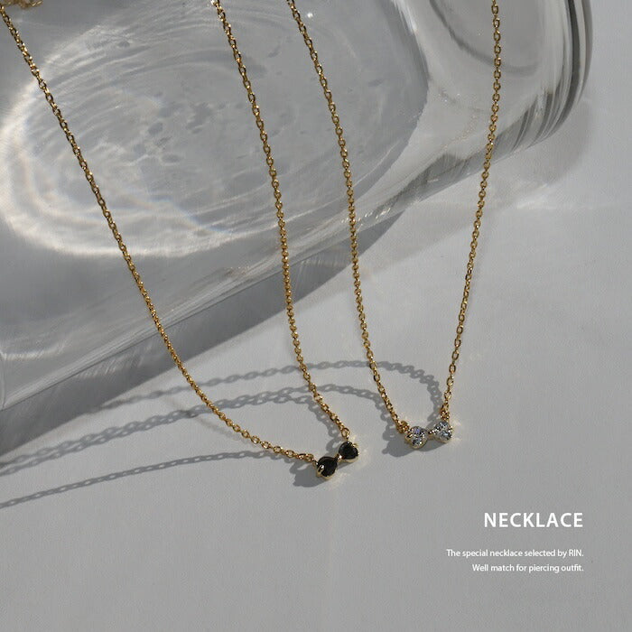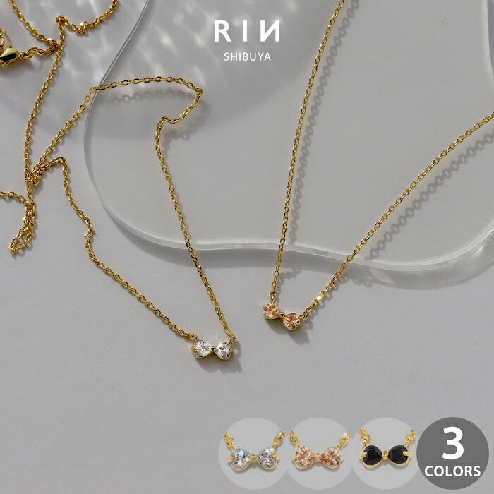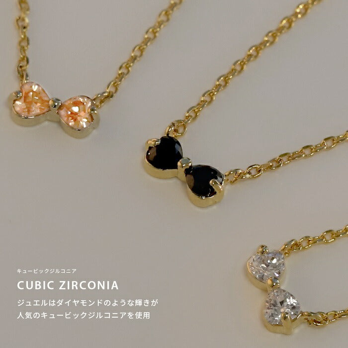 nec-83 ネックレス レディース チェーン チェーンネックレス アズキチェーン あずきチェーン リボン 39.5cm 短め ショート クリア オレンジ ブラック 18k 18金 シンプル カジュアル シンプル かわいい 長さ 大人 ジルコニア フォーマル 凛