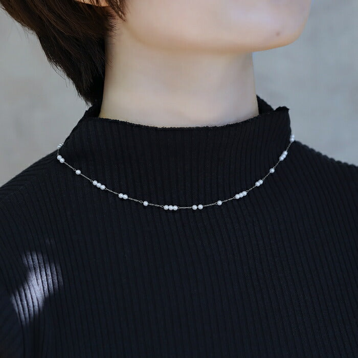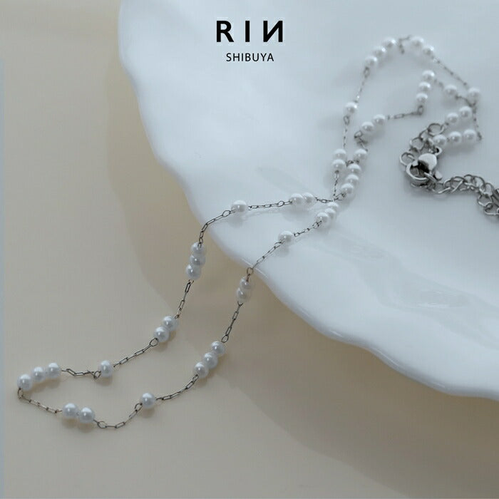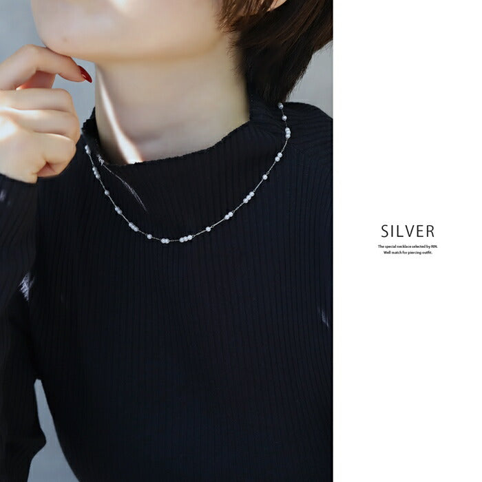 nec-89 ネックレス レディース チェーン チェーンネックレス パールネックレス サージカルステンレス 金属アレルギー 金属アレルギー対応 つけっぱなし ステンレス 41cm クリップチェーン ショート パール シンプル カジュアル 長さ フォーマル 凛