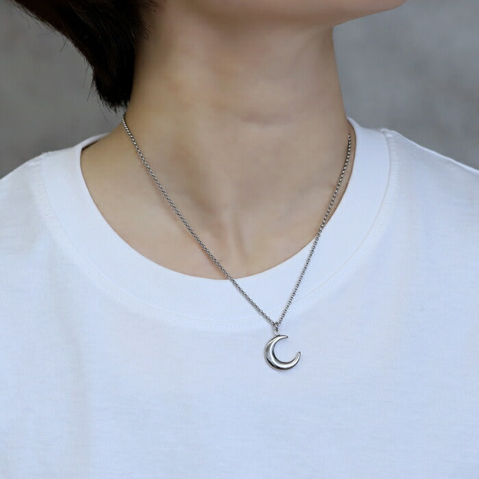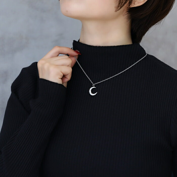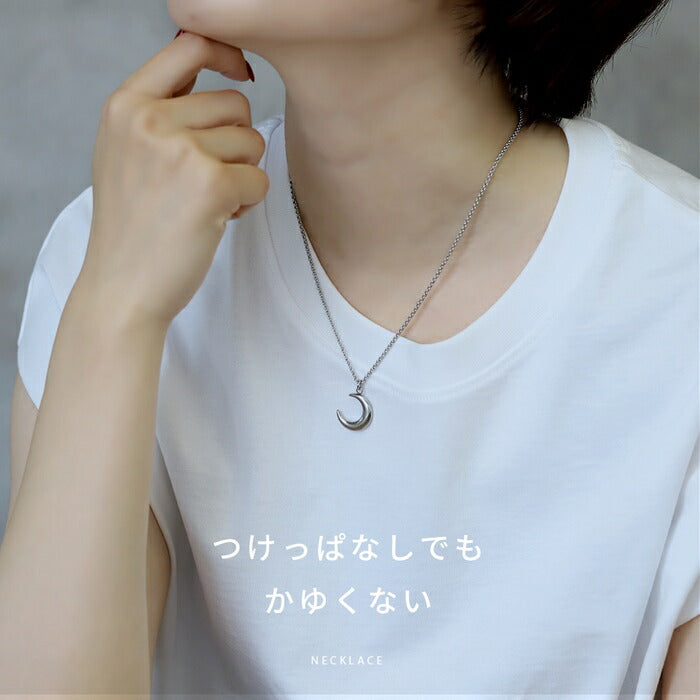 nec-90 ネックレス 月 ムーン レディース チェーン チェーンネックレス サージカルステンレス 金属アレルギー 金属アレルギー対応 つけっぱなし ステンレス あずきチェーン 41cm ショート シルバー シンプル 普段使い 長さ 大人 フォーマル 凛