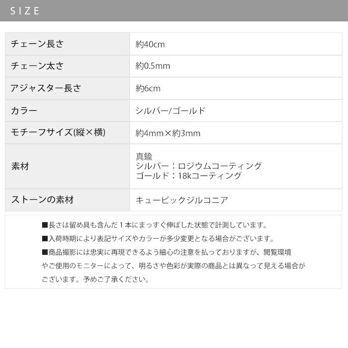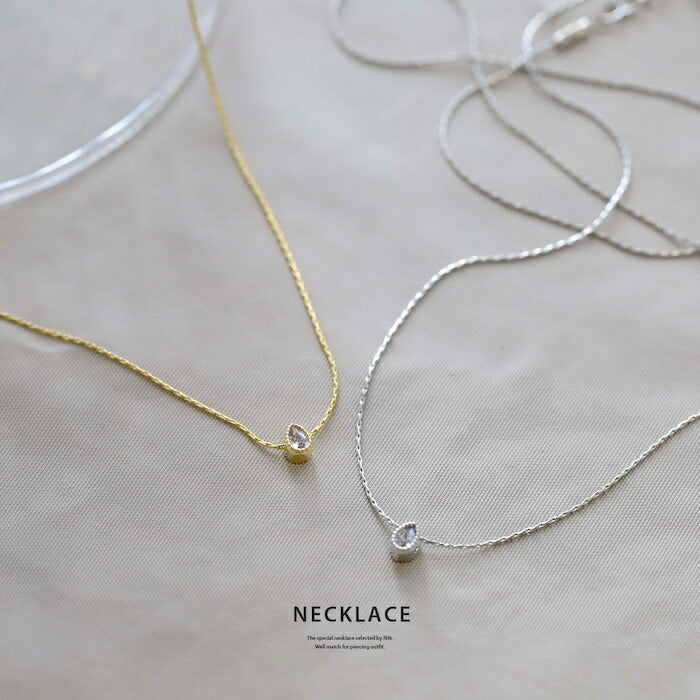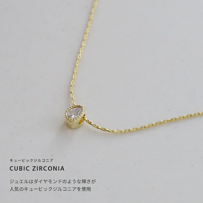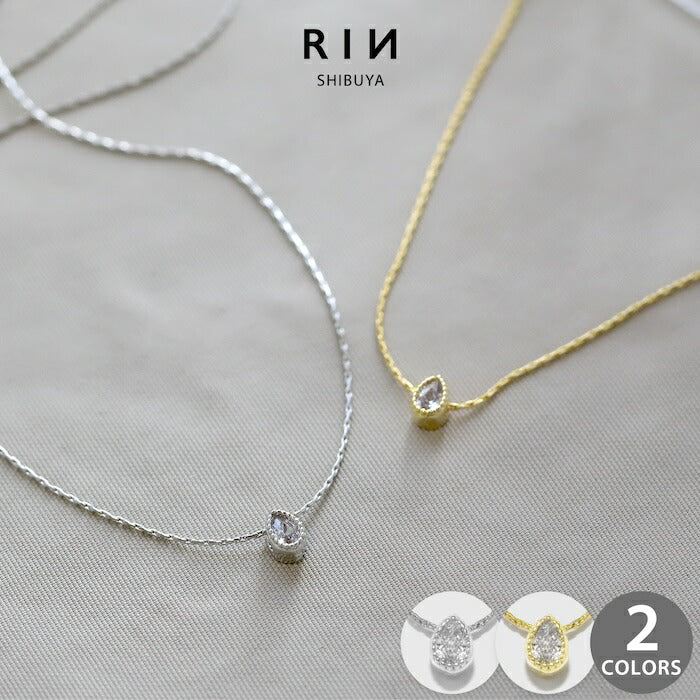 nec-94 ネックレス レディース チェーン チェーンネックレス シンプル 18k あずきチェーン 40cm ロジウムコーティング カジュアル シンプル 雫 ドロップ シルバー ゴールド かわいい おしゃれ 大人 上品 フォーマル キュービックジルコニア 凛