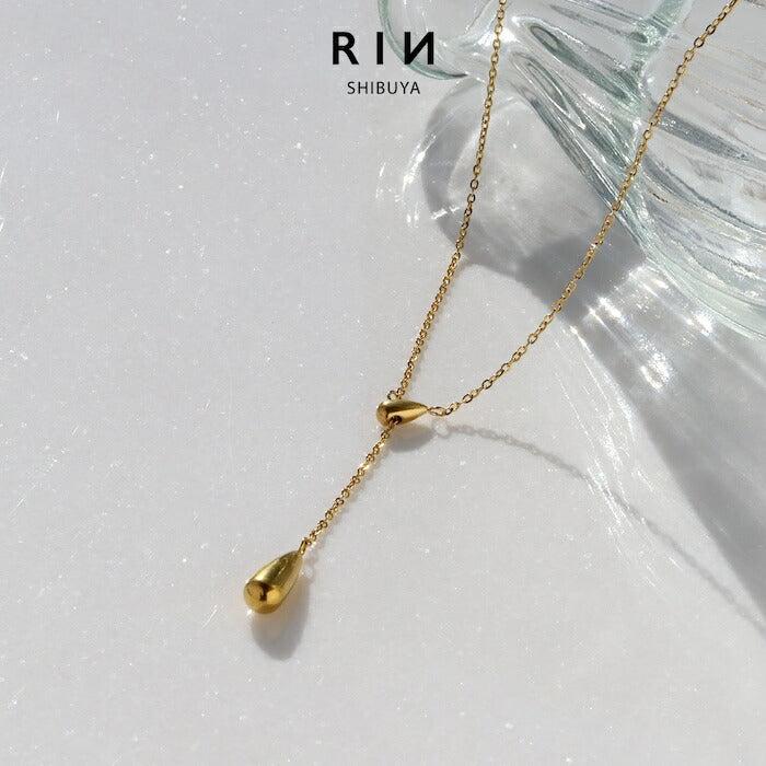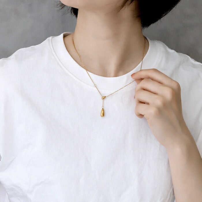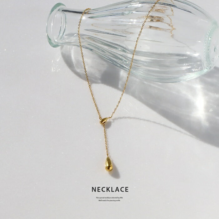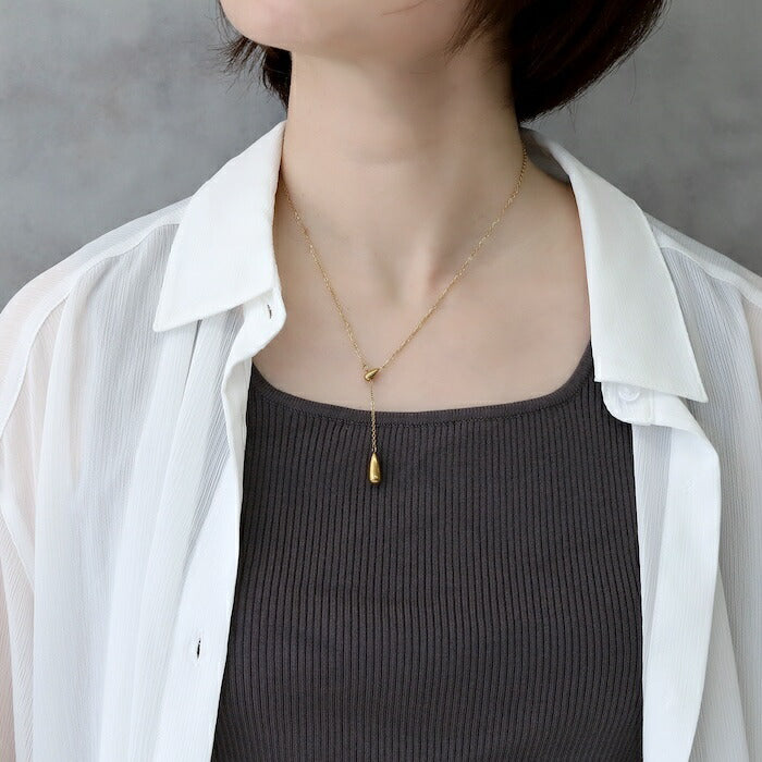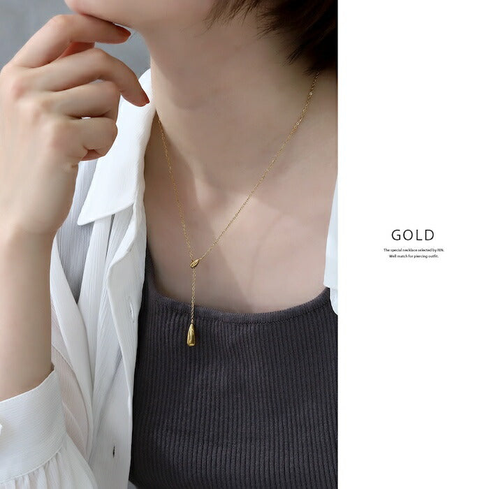 ネックレス チェーン Y字 サージカルステンレス ラリエット ドロップ 雫 あずきチェーン 18金 ネックレス0103 nec-99