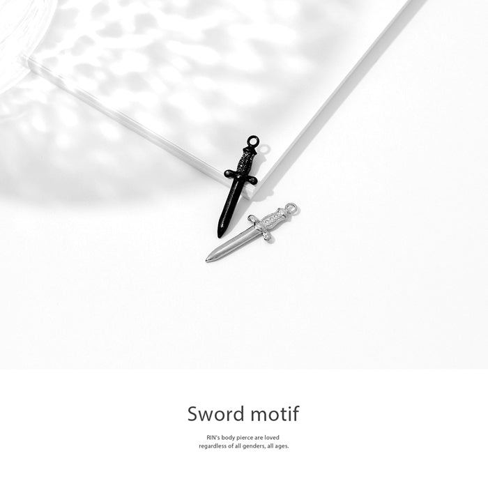 ori-0062 軟骨ピアス 14G 16G 18G ボディピアス かわいい チャーム 和風 日本刀 剣 刀 シルバー ブラック メンズ ボディーピアス