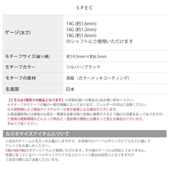 | モチーフサイズ(縦×横) | 約19.5mm×約6.5mm |
