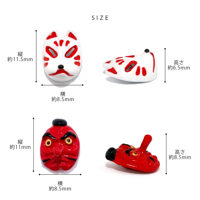 狐(約11.5mm×約8.5mm×約6.5mm)天狗(約11mm×約8.5mm×約8.5mm)