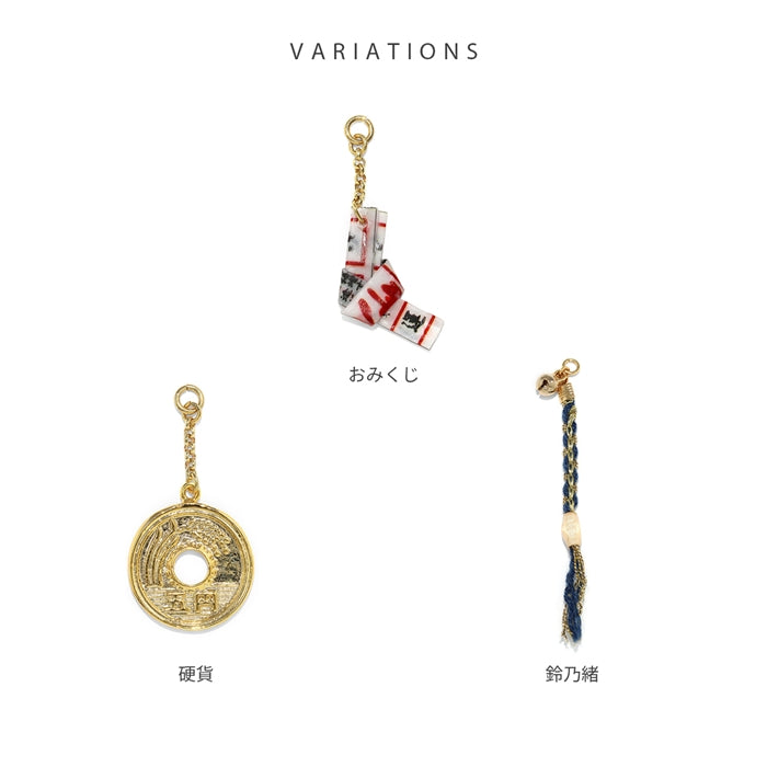 | モチーフサイズ(縦×横) | おみくじ 36mm×約11mm 硬貨 約33.5mm×約17mm 鈴緒 約60mm×約5mm |