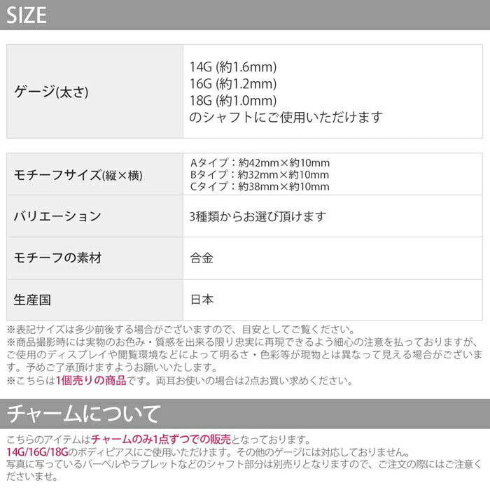コチラのアイテムはチャームのみ1点ずつでの販売となっております
