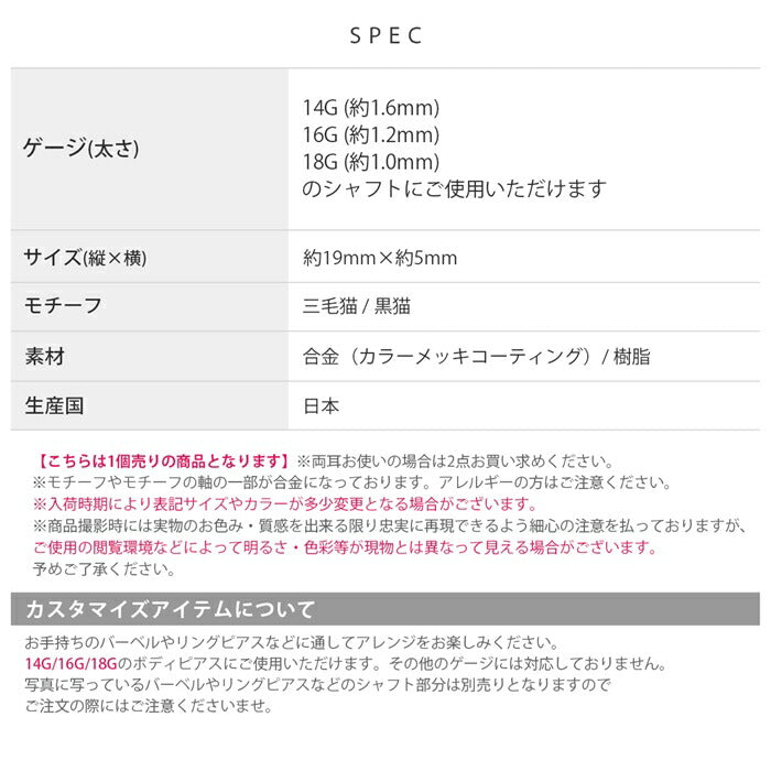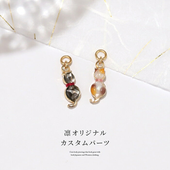 14G 16G 18G 猫 三毛猫 黒猫 チャームカスタム パーツ 【片耳用】 チャーム0250 ori-157