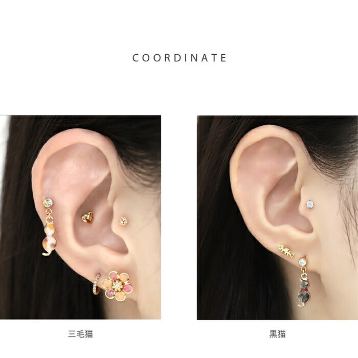 ori-157 ボディピアス 三毛猫 黒猫 チャーム ピアス パーツ カスタマイズ 樹脂 ゆらゆら ネコ キャット かわいい ぷっくり にゃんこ ゴールド 人気 トレンド カジュアル デイリー 日常使い 遊び お出かけ 凛 オリジナル 片耳用