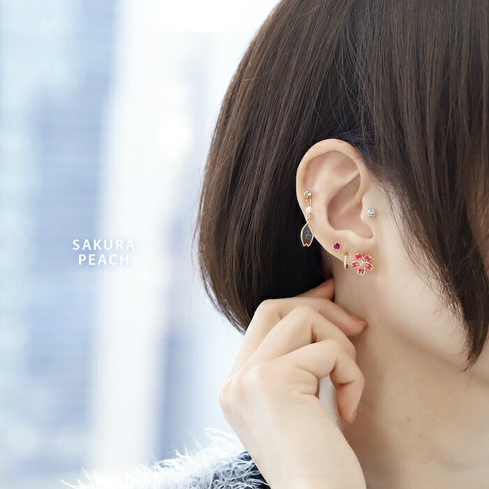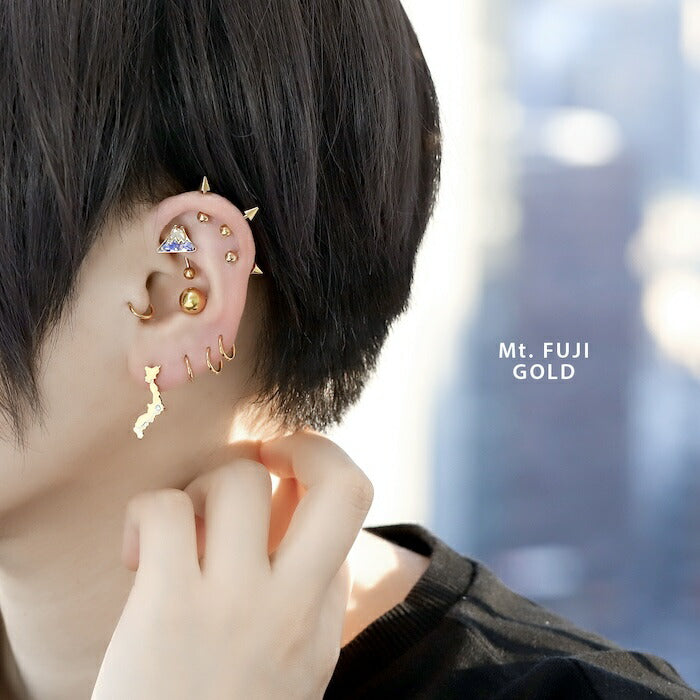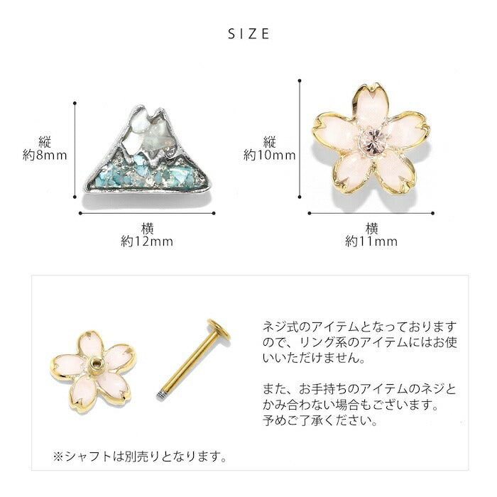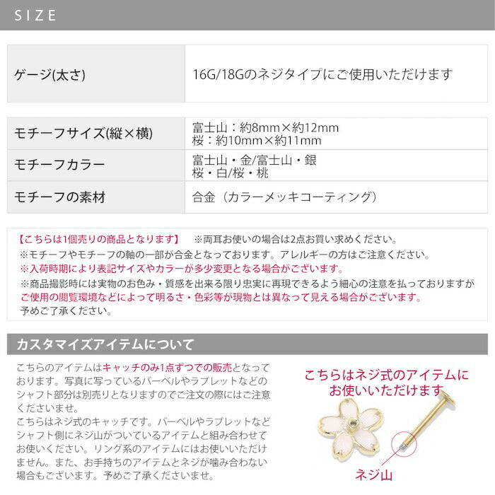 ori-161 ボディピアス キャッチ 軟骨ピアス 金属アレルギー 富士山 山 桜 さくら 16G 18G ヘリックスピアス つけっぱなし ゴールド シルバー 金 銀 軟骨 トラガス ジュエル かわいい 和風 日本 軟骨用 片耳用