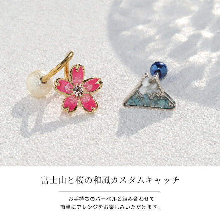 ボディピアス キャッチ 金属アレルギー 富士山 山 桜 さくら 16G 18G 和風 日本 キャッチ0269 ori-161