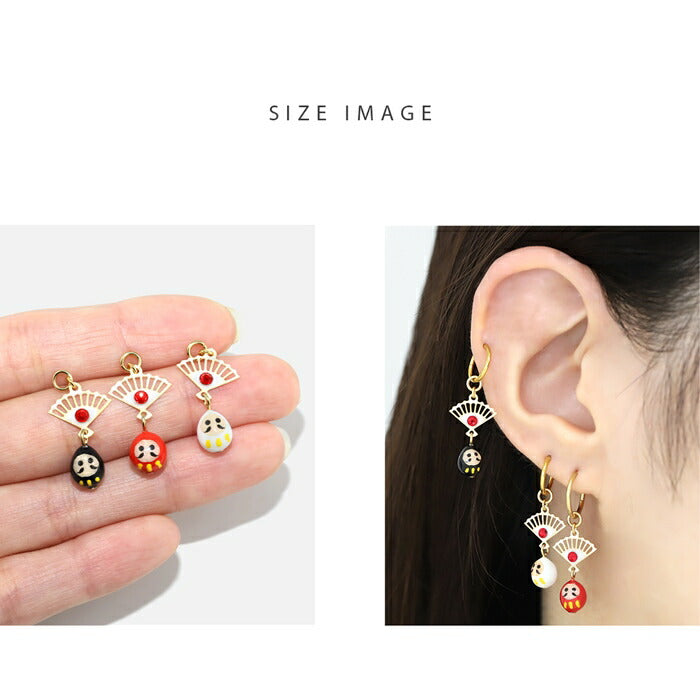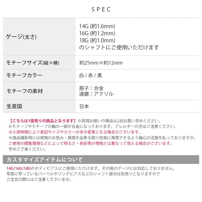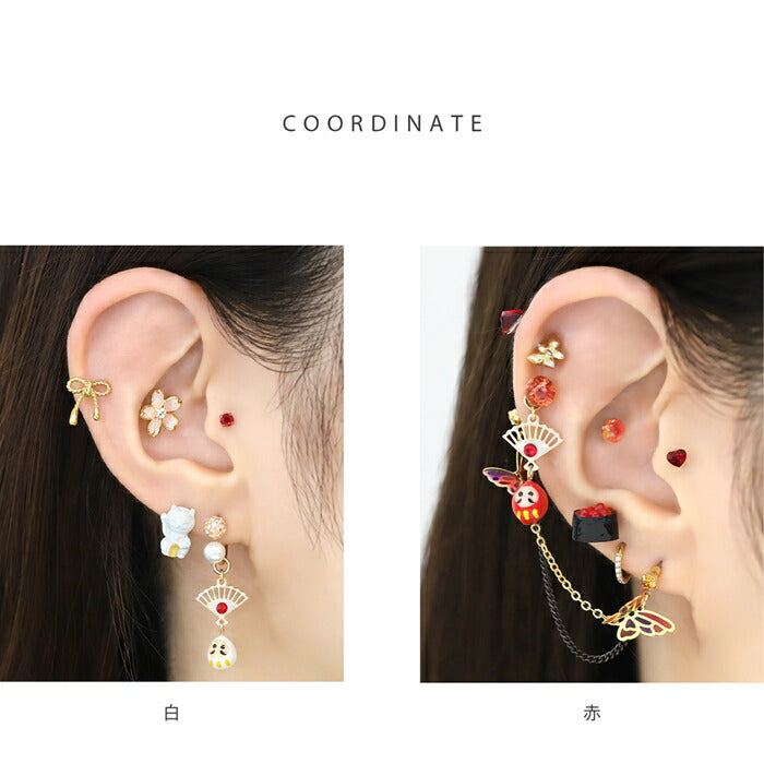 ori-163 軟骨ピアス ボディピアス 14g 16g 18g チャーム ダルマ だるま 扇子 金属アレルギー つけっぱなし キュービックジルコニア セカンドピアス レディース アクリル かわいい 白 赤 黒 和風 カスタム カスタマイズ 片耳用