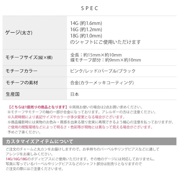 ori-87 軟骨ピアス 14G 16G 18G ボディピアス かわいい チャーム パーツ 蝶 バタフライ 和 和風 アレンジ パーツ カスタム カスタマイズ ピアス メンズ 軟骨 ピアス ボディーピアス
