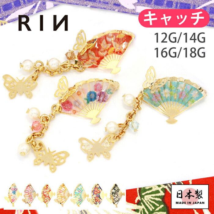 ボディピアス 軟骨ピアス 12G 14G 16G 18G キャッチ 和 和風 扇子 蝶 パール ジュエル キャッチ0245 ori-92