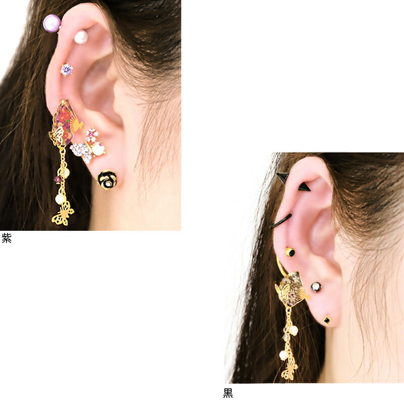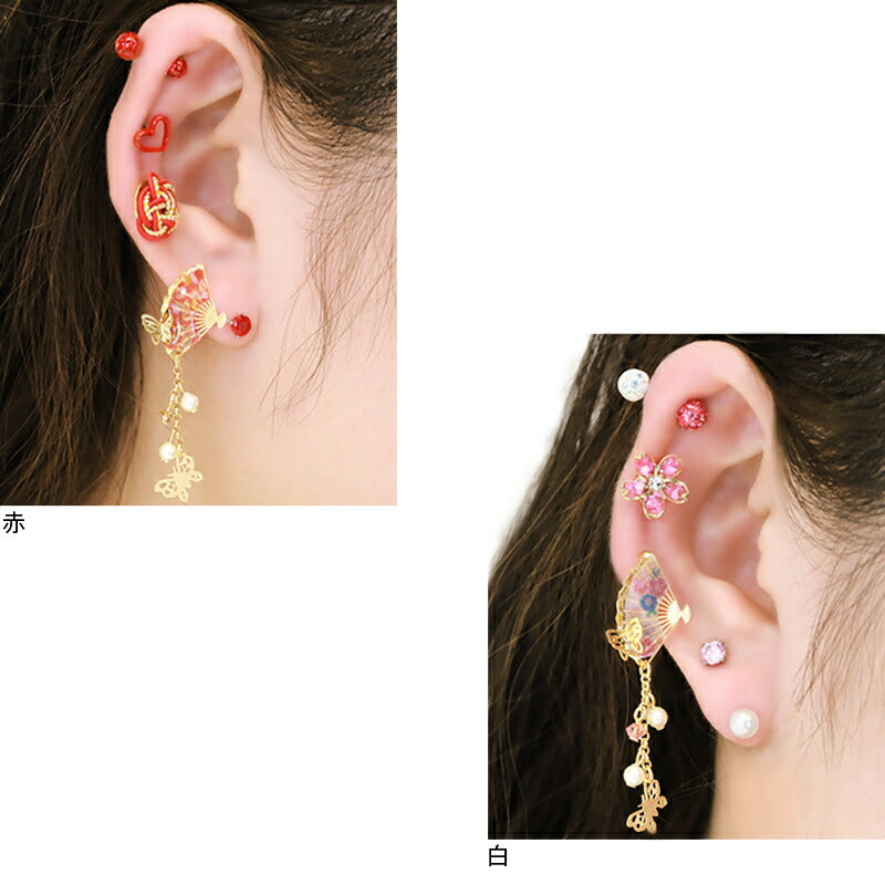 ori-92 軟骨ピアス キャッチ 14G 12G 16G 18G ボディピアス 和 和風 扇子 蝶 パール ジュエル 14ゲージ 12ゲージ 16ゲージ 18ゲージ 軟骨 ピアス 片耳用 日本 和柄 刀 かわいい