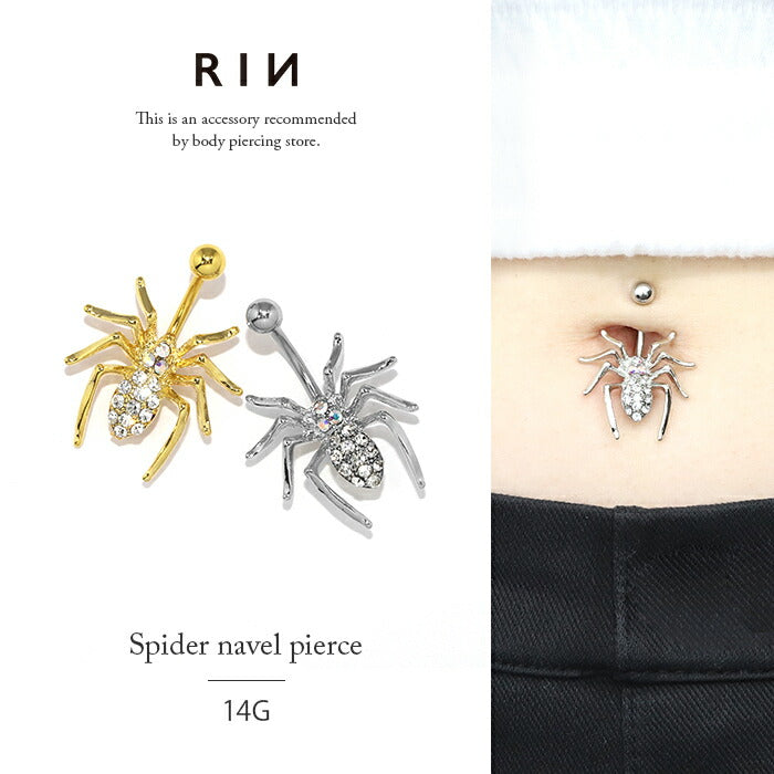 【全品送料無料】 へそピアス ボディピアス 軟骨ピアス 14G キャッチ サージカルステンレス ファーストピアス セカンドピアス シルバー ゴールド 蜘蛛 クモ スパイダー バナナバーベル ボディーピアス 片耳用 凛 RIN