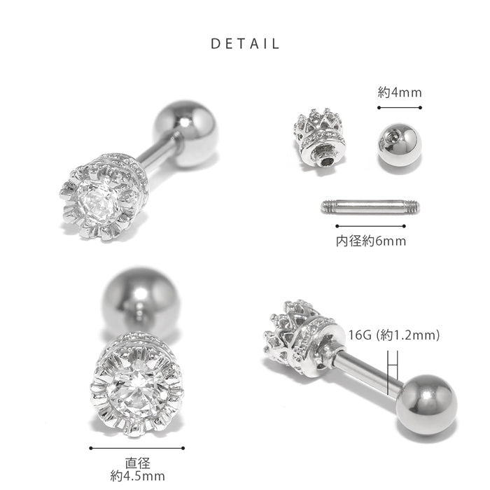 r2f-114-196【全品送料無料】 軟骨ピアス 16G ボディピアス かわいい キャッチ チャーム サージカルステンレス 金属アレルギー対応 クラウン 王冠 かわいい ジュエル シンプル キラキラ おしゃれ アンテナヘリックス ボディピ 軟骨用 ファーストピアス セカンドピアス メンズ