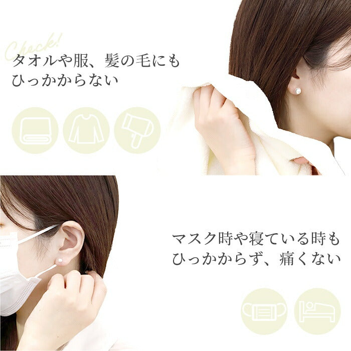 裏面がフラットな形状のマスクなどが引っ掛からないピアスなので、痛い思いをしません!
