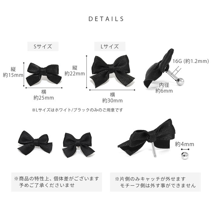 rin-006 軟骨ピアス 16G ボディピアス サテンリボン バレエコア ストレートバーベル サージカルステンレス 片耳用