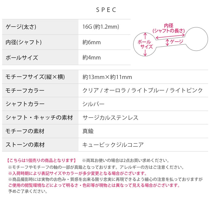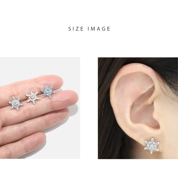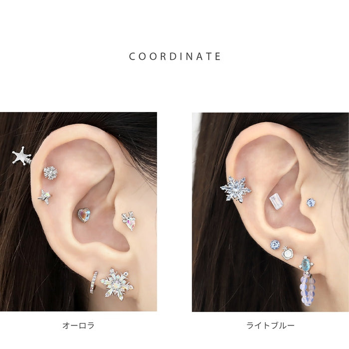 rin-007 ボディピアス 軟骨ピアス 16G 雪の結晶 サージカルステンレス 金属アレルギー対応 キュービックジルコニア 雪 ストレートバーベル スノークリスタル snow ゴシック ライトブルー オーロラ イヤーロブ パーティ クリスマス お出かけ 凛だけ ギフト 片耳用