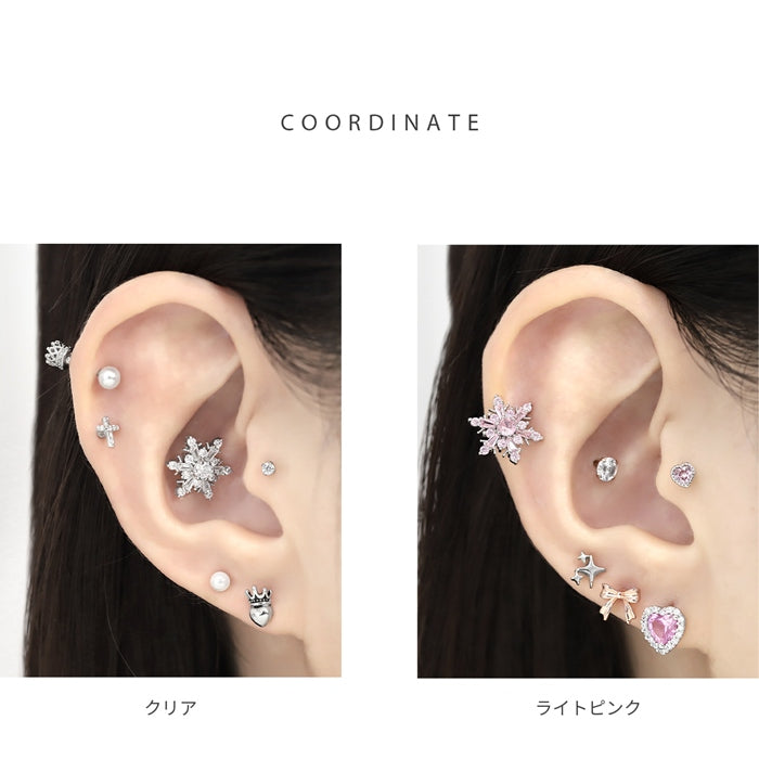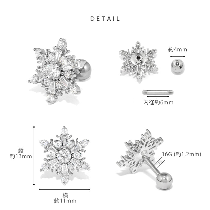 ボディピアス 16G 雪の結晶 スノークリスタル ステンレス ストレートバーベル 軟骨1499 rin-007