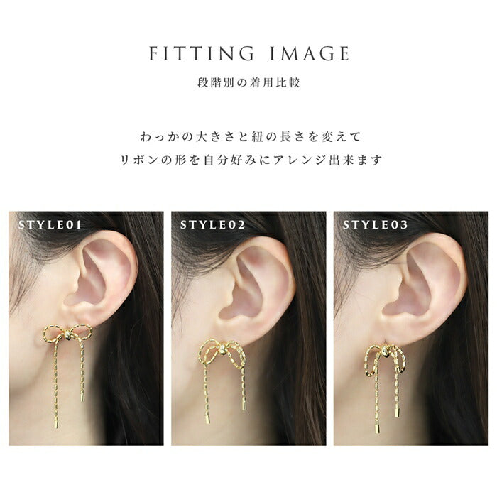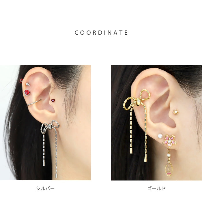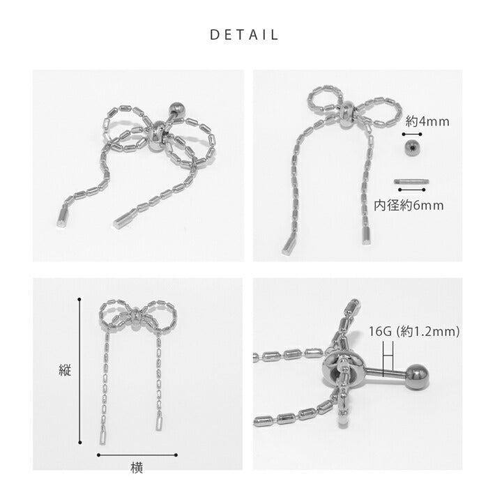 rin-008 ボディピアス 軟骨ピアス 16G ロングリボン バレエコア 金属アレルギー対応 ボールチェーン 形状調節可 ストレートバーベル サージカルステンレス つけっぱなし ヘリックス かわいい フェミニン 女子会 キュート お出かけ デート 凛だけ プレゼント 片耳用