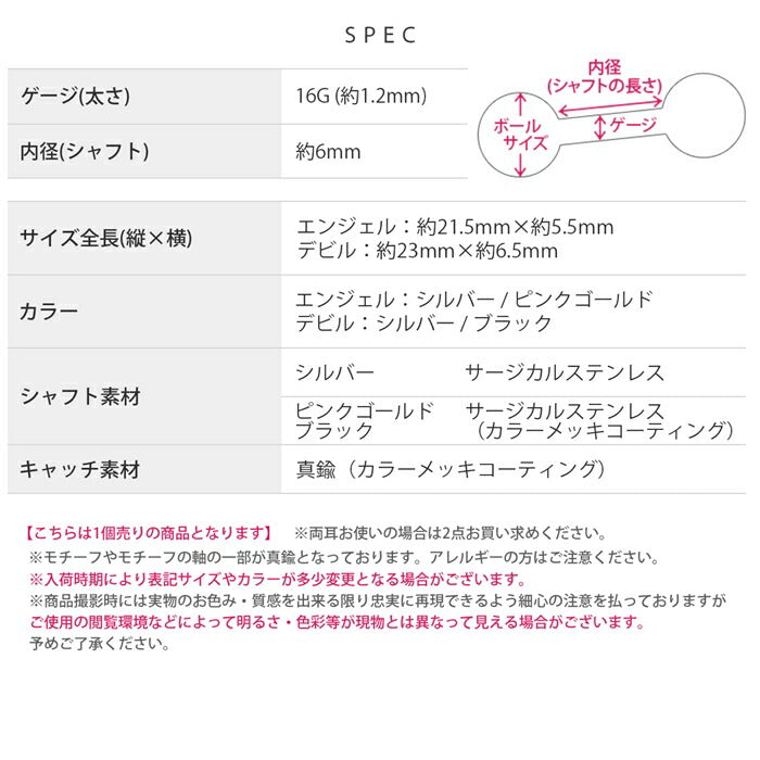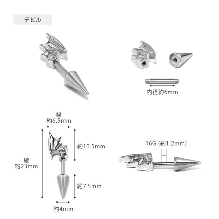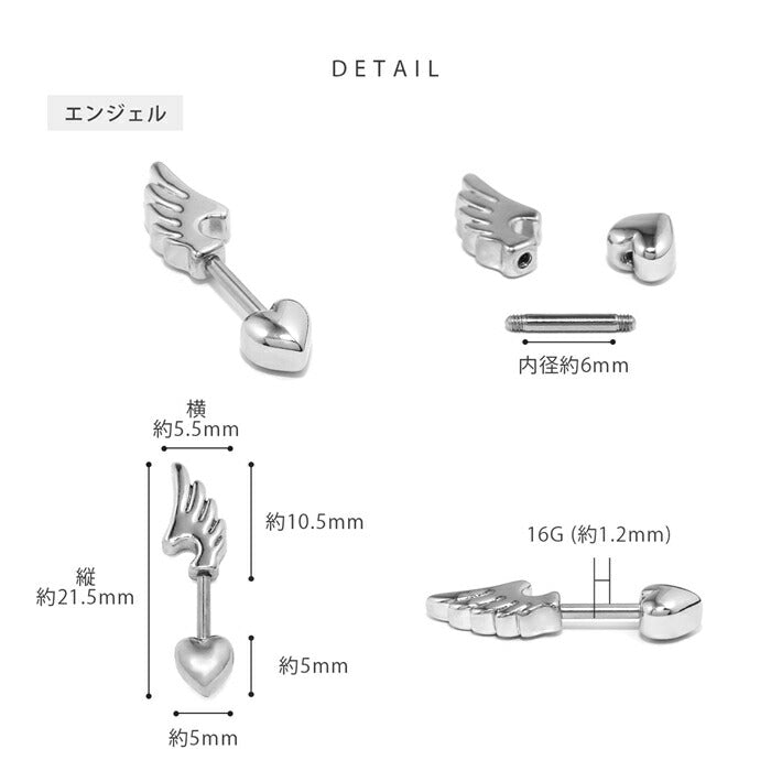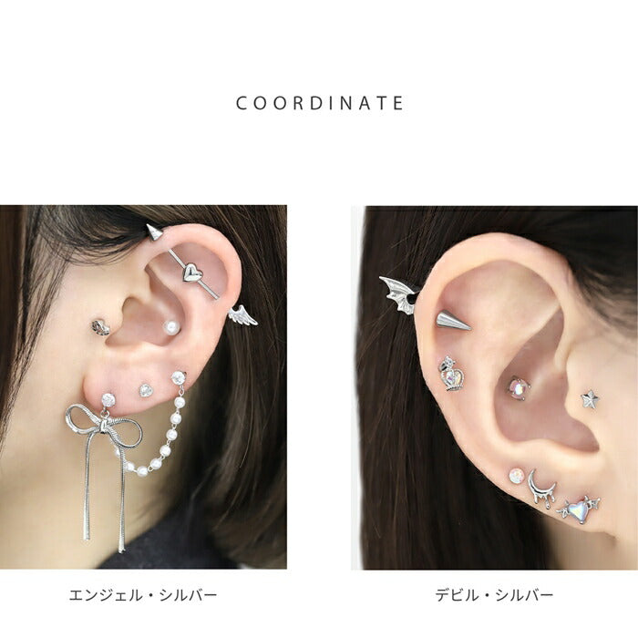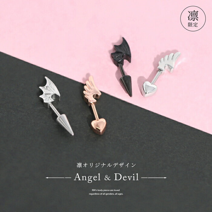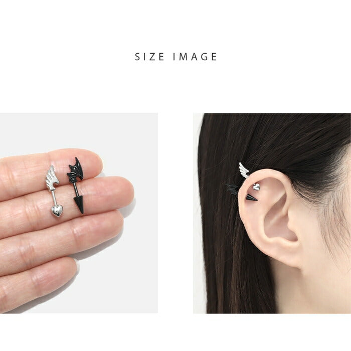 ★rin-010 軟骨ピアス 金属アレルギー対応 16G ボディピアス 天使 悪魔 サージカルステンレス ピアス つけっぱなし アンテナヘリックス エンジェル デビル 翼 ハートキャッチ コーン レディース 季節 イベント お出かけ デイリー ストレートバーベル 片耳用