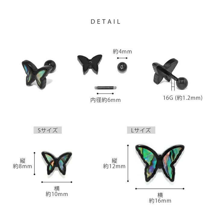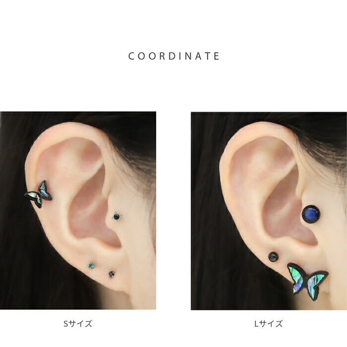 rin-011 軟骨ピアス 金属アレルギー対応 16G ボディピアス 蝶 貝 シェル サージカルステンレス ピアス アレルギー対応 レディース PVD バタフライ 螺鈿 らでん 伝統工芸 美しい オリジナル きらめき 軟骨 なんこつぴあす セカンドピアス 片耳用