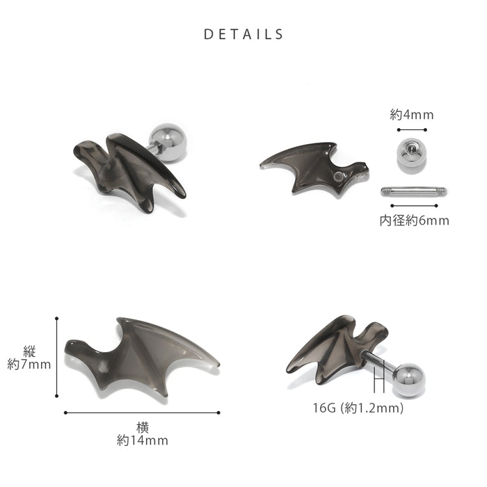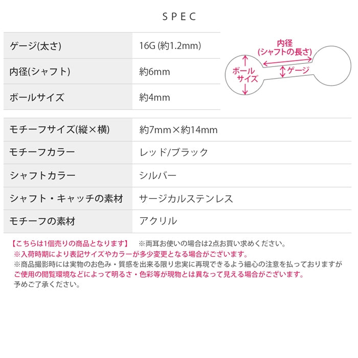 rin-014 軟骨ピアス 16G ボディピアス デビル 悪魔 羽 翼 アクリル クール レッド ブラック ストレートバーベル ピアス サージカルステンレス 片耳用