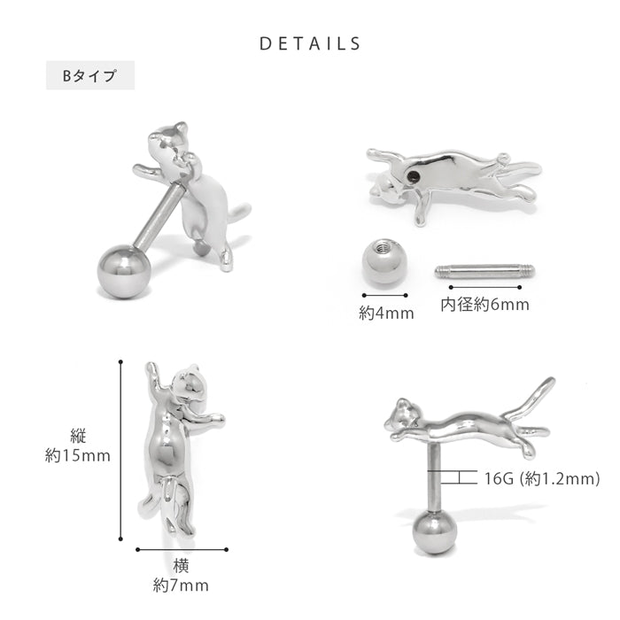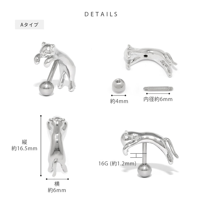 rin-018 軟骨ピアス 16G ボディピアス のびネコ 猫 かわいい アンテナヘリックス イベント ストレートバーベル ピアス サージカルステンレス 片耳用