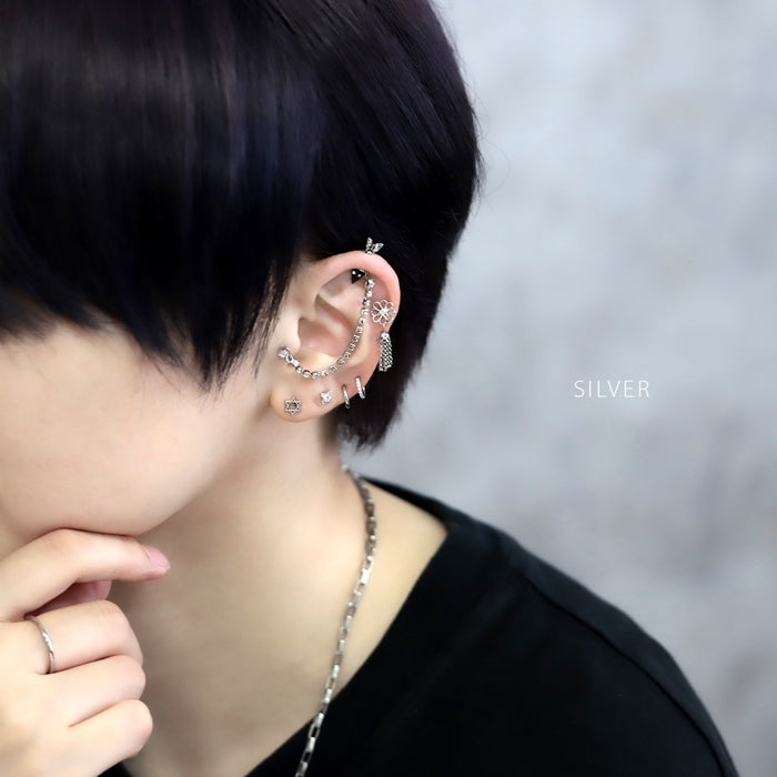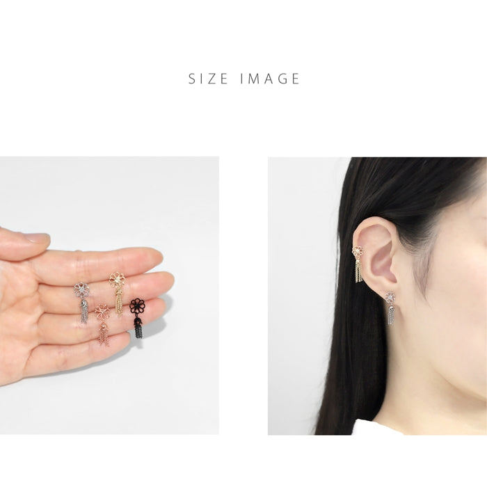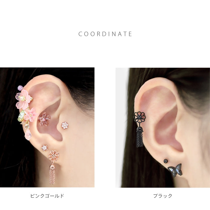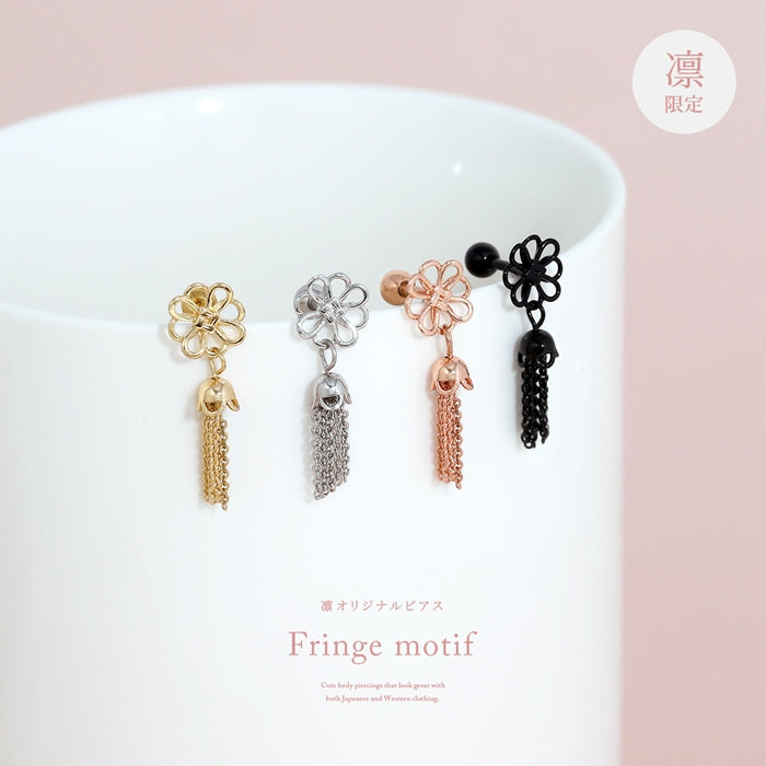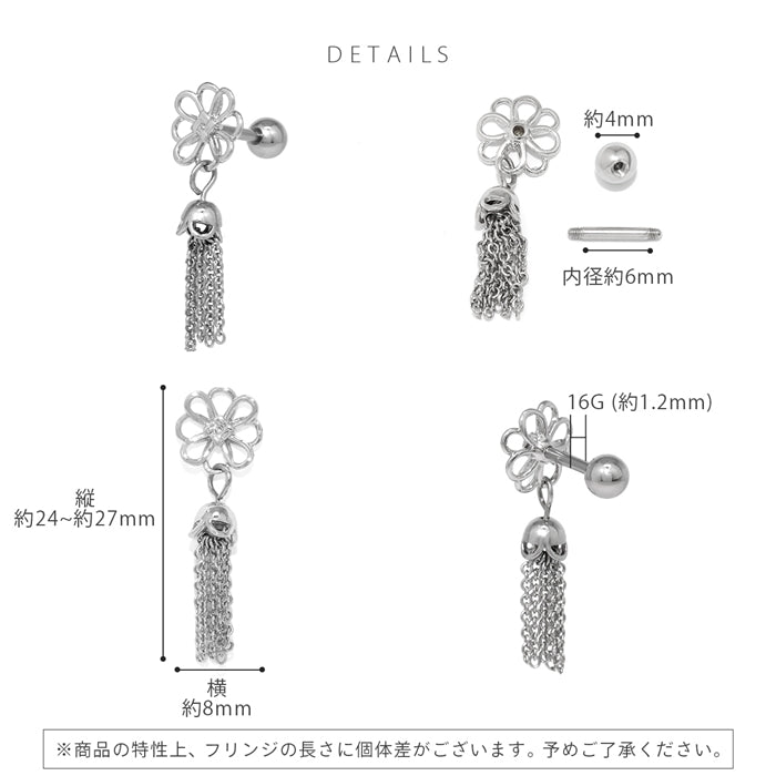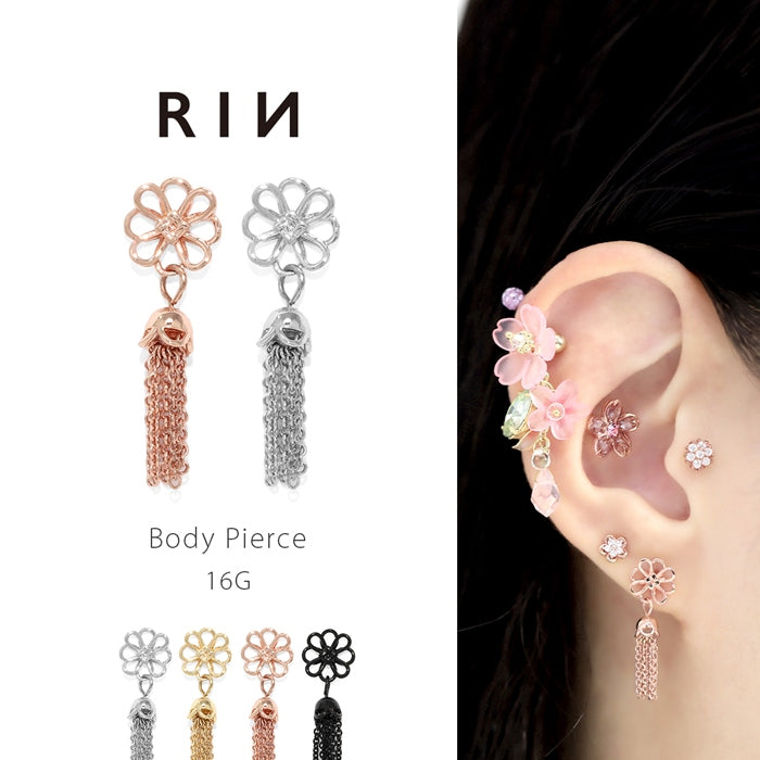 rin-020 軟骨ピアス 16G ボディピアス 花 チェーン フリンジ 華やか ゆれる 大きめストレートバーベル ピアス サージカルステンレス 片耳用